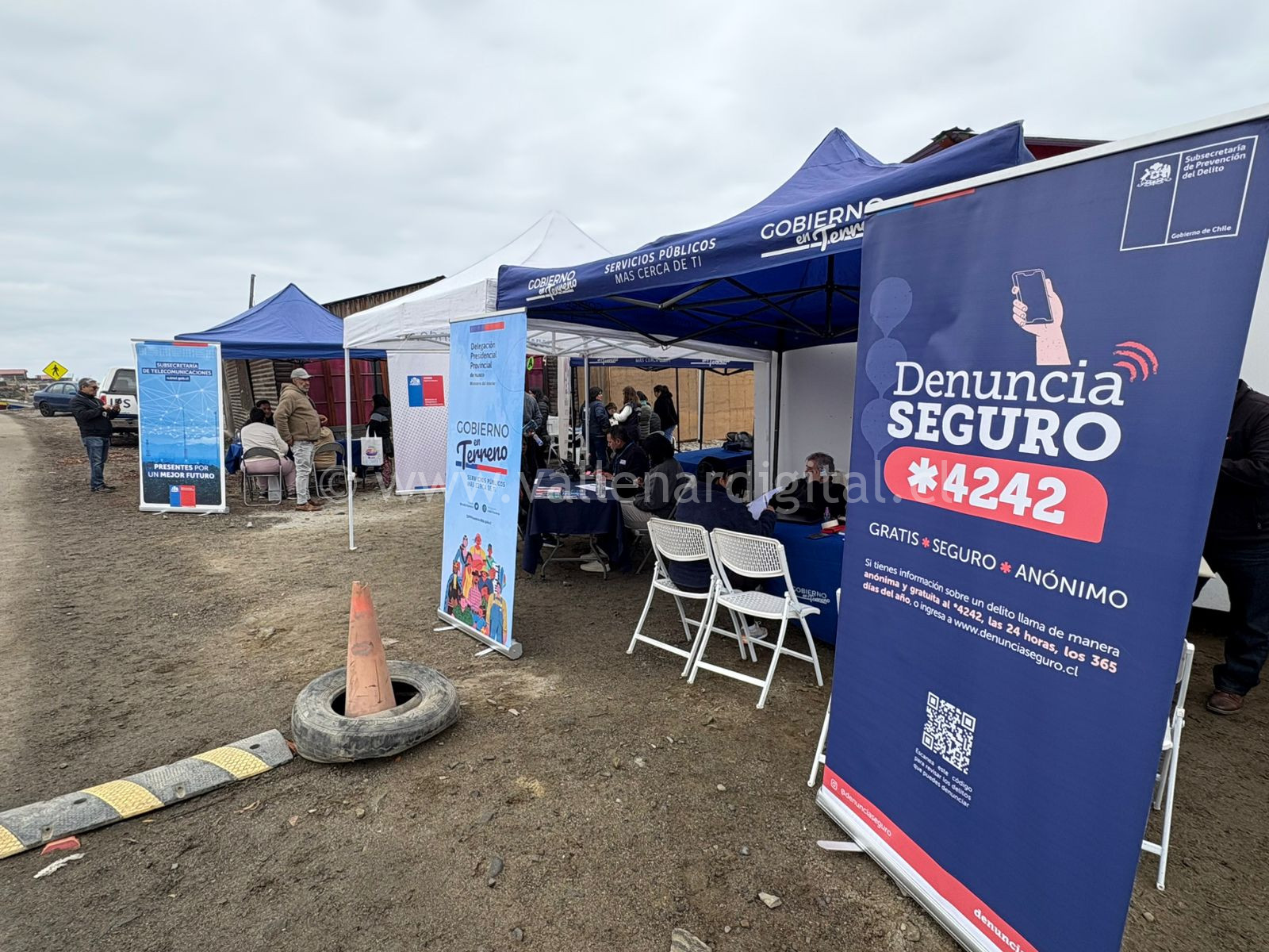 La jornada incluyó además una feria de servicios públicos, que permitió a los vecinos acceder directamente a atención de distintas instituciones del Estado. Estuvieron presentes representantes de Carabineros, la Armada, Sernapesca, la Dirección Provincial de Vialidad, el Ministerio de Desarrollo Social y Familia (Mideso), el Servicio de Impuestos Internos (SII), Subtel, el Registro Civil, Conadi, Seguridad Pública de la Delegación Presidencial y equipos municipales de salud y seguridad ciudadana.