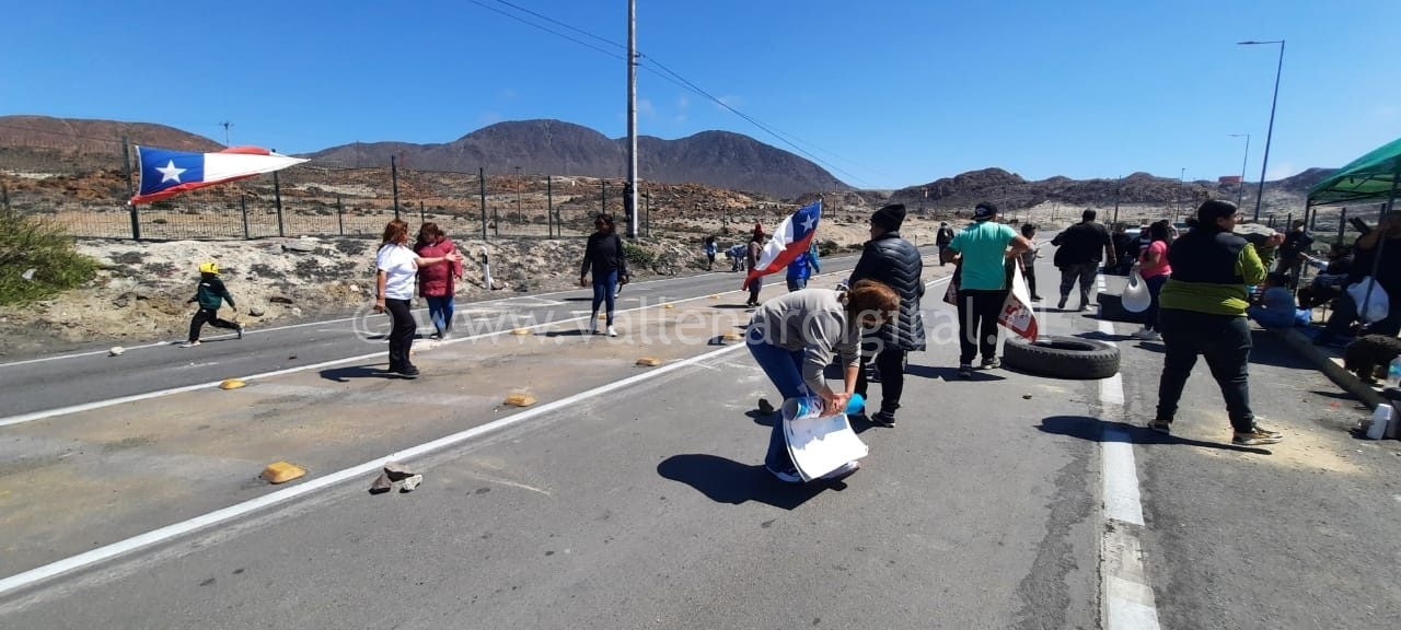 Una nueva movilización protagonizaron este sábado, familias de la Villa San Pedro de Huasco, ahora el punto de bloqueo para el paso vehicular se situó en el Km. 2 de la Ruta C-468, ingreso Puerto Las Lozas, en la ciudad – puerto de Huasco.