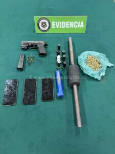 Respecto a las incautaciones, Carabineros informó que se logró sacar de las calles 24 gramos 500 miligramos de Marihuana; una escopeta de fabricación artesanal, con 7 cartuchos calibre 12, una pistola marca Thunder 9 pro Nro de serie H68998, con u cargador y 4 cartuchos 9 mm y una vainilla 9mm.