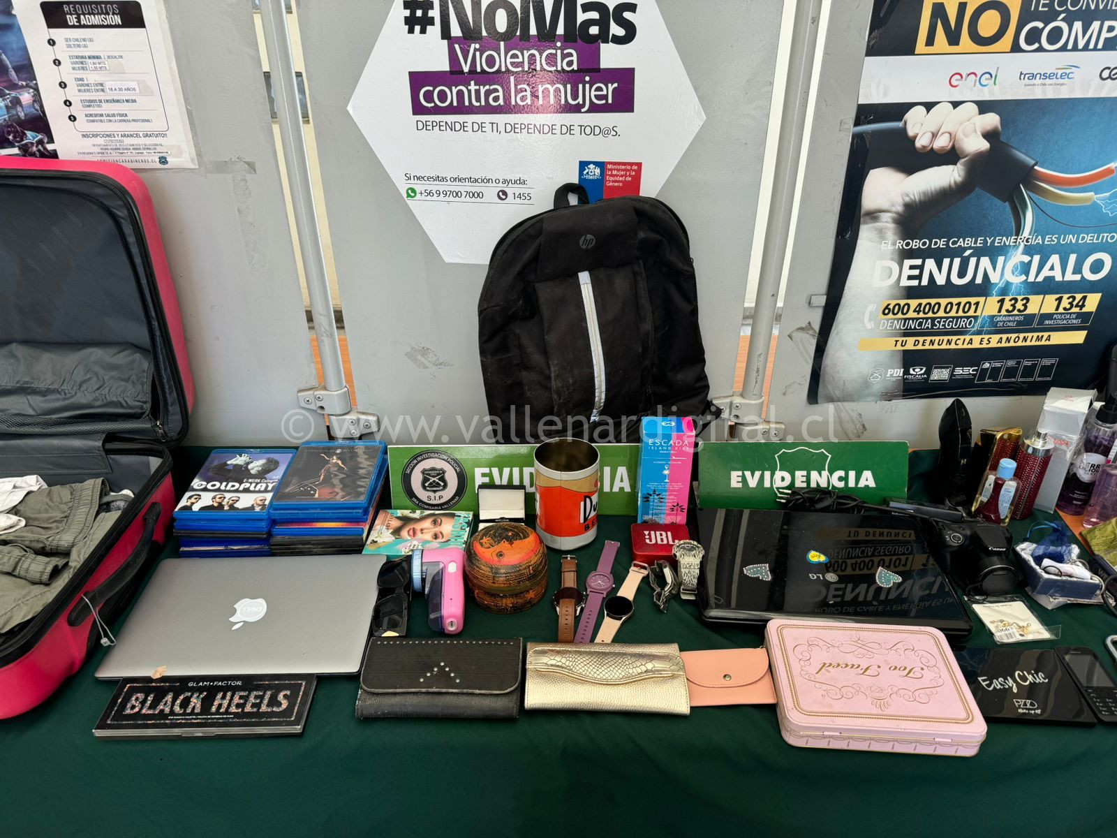 El Mayor Carlos Tomasoni, Comisario de Carabineros en Vallenar, señaló que gracias al llamado oportuno y rápido despliegue del personal se logró recuperar relojes, perfumes, billeteras, ropa, etc. especies que fueron reconocidas por la víctima.