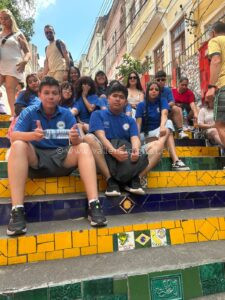 También recorrieron la icónica Escalera de Selarón, obra artística del chileno Jorge Selarón que se ha convertido en uno de los puntos turísticos más fotografiados de la ciudad. Otro de los destinos fue la playa de Arraial do Cabo, conocida por sus aguas cristalinas y arenas blancas, un paraíso natural que impresionó a los jóvenes por su belleza y valor turístico.