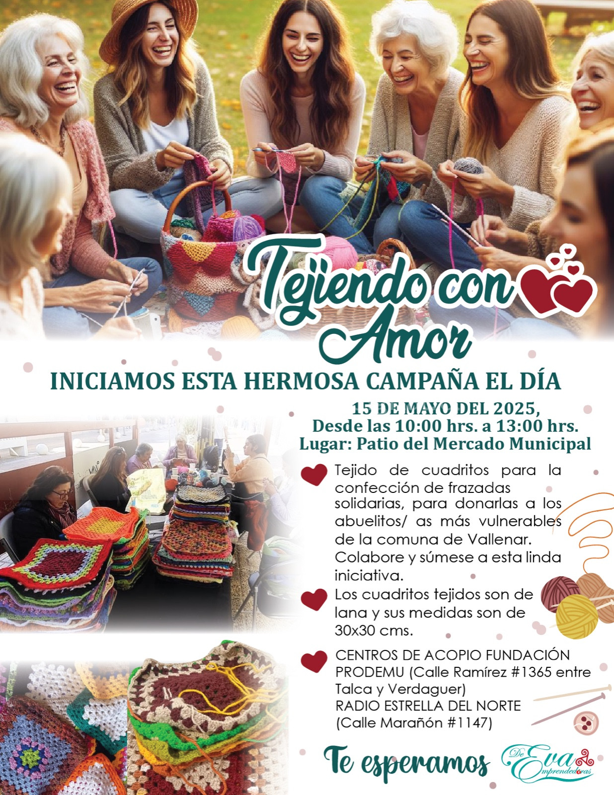 Con la llegada del invierno, la Agrupación de Evas Emprendedoras se prepara para una nueva edición de su tradicional campaña solidaria “Tejiendo con Amor”, que busca entregar abrigo a adultos mayores en situación de vulnerabilidad.