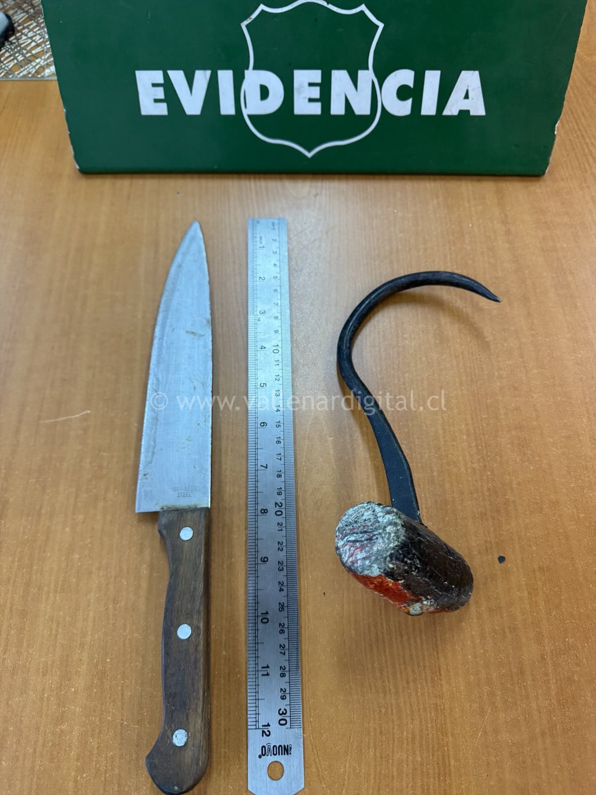 Vallenar: Carabineros detiene a sujeto armado con garfio metálico y cuchillo en plena vía pública