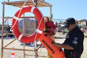 Dentro de las medidas está la delimitación del sector de baño con boyas, instalación de banderines, implementos de seguridad y primeros auxilios, megáfono, binoculares y toda la indumentaria para que los dos salvavidas cumplan con las normativas y puedan accionar a tiempo ante eventualidad que puedan ocurrir en el transcurso del Verano Azul.