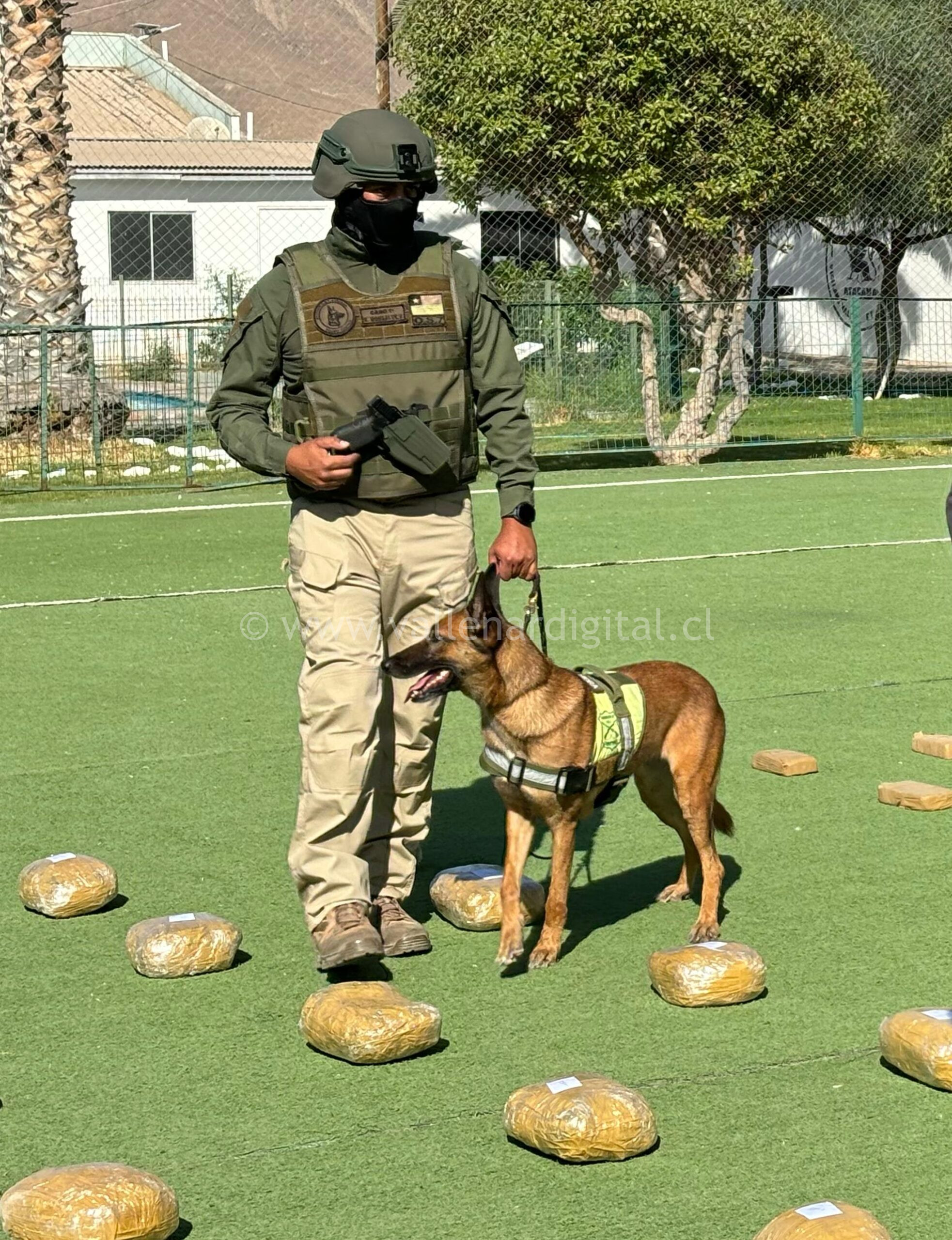 Hydra es uno de los ejemplares caninos antidrogas del OS-7 Atacama, quien junto a Gorky colaboran a la par de los funcionarios especialistas de esta sección, quienes a la fecha han sacado de circulación más de mil 500 kilos de diversas sustancias ilícitas provenientes del norte del país y con destino a la Región Metropolitana.