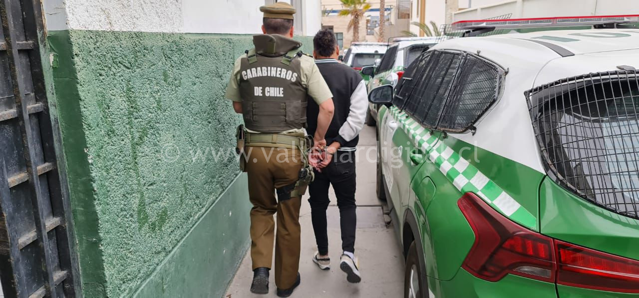 Fue por este motivo que el personal de Carabineros procedió a realizar un seguimiento a distancia, y al llegar al Kilómetro 975, el conductor detuvo el vehículo y Carabineros procedió a realizar el control vehicular. Al consultar al servicio de guardia por la placa patente, manifiestan que dicha placa patente mantiene un encargo vigente por el delito de receptación de fecha 18 de noviembre de 2024 en la comuna de Viña del Mar.