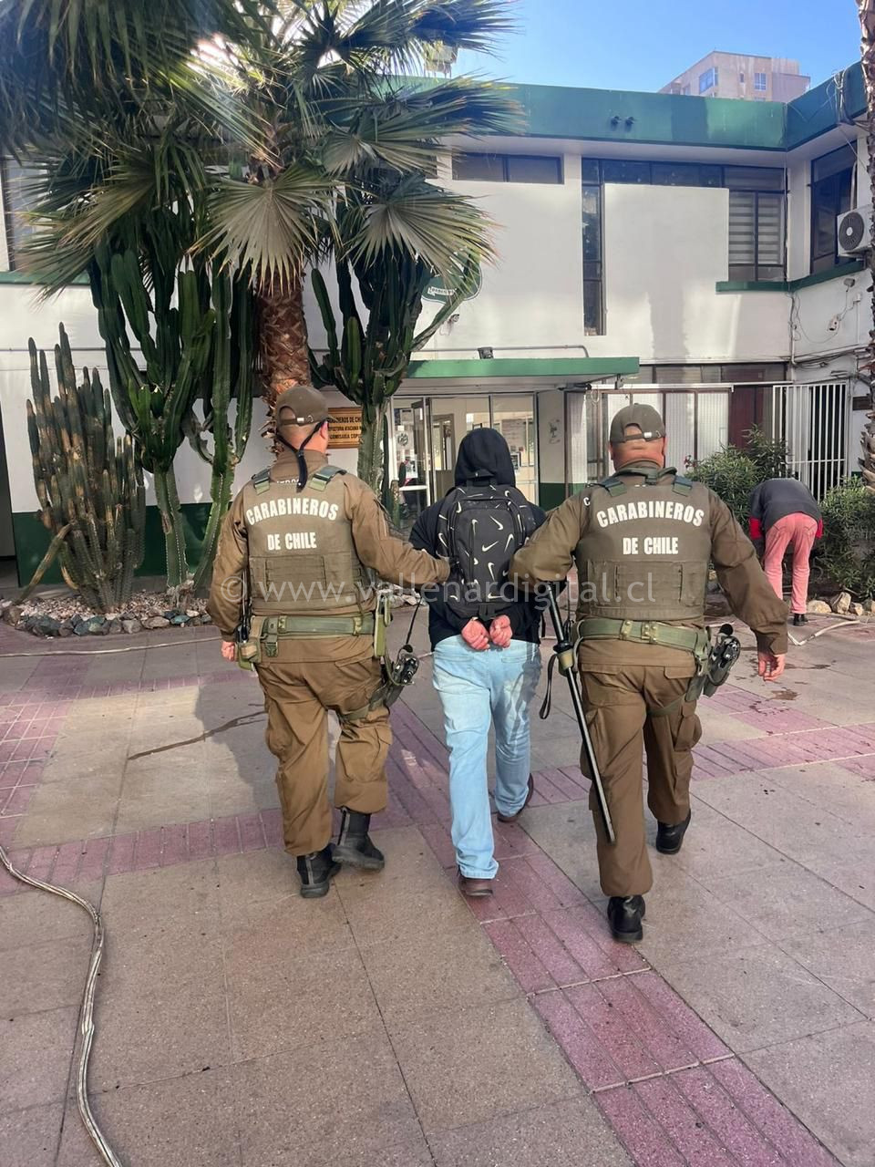 Tras consultar sus antecedentes, Carabineros comprobó que el individuo mantenía un amplio prontuario delictual, con un total de 21 causas previas por diversos delitos, entre ellos robo, desacato y receptación. Asimismo, se verificó que contaba con cinco órdenes de detención vigentes, emitidas por distintos juzgados de garantía de la región.