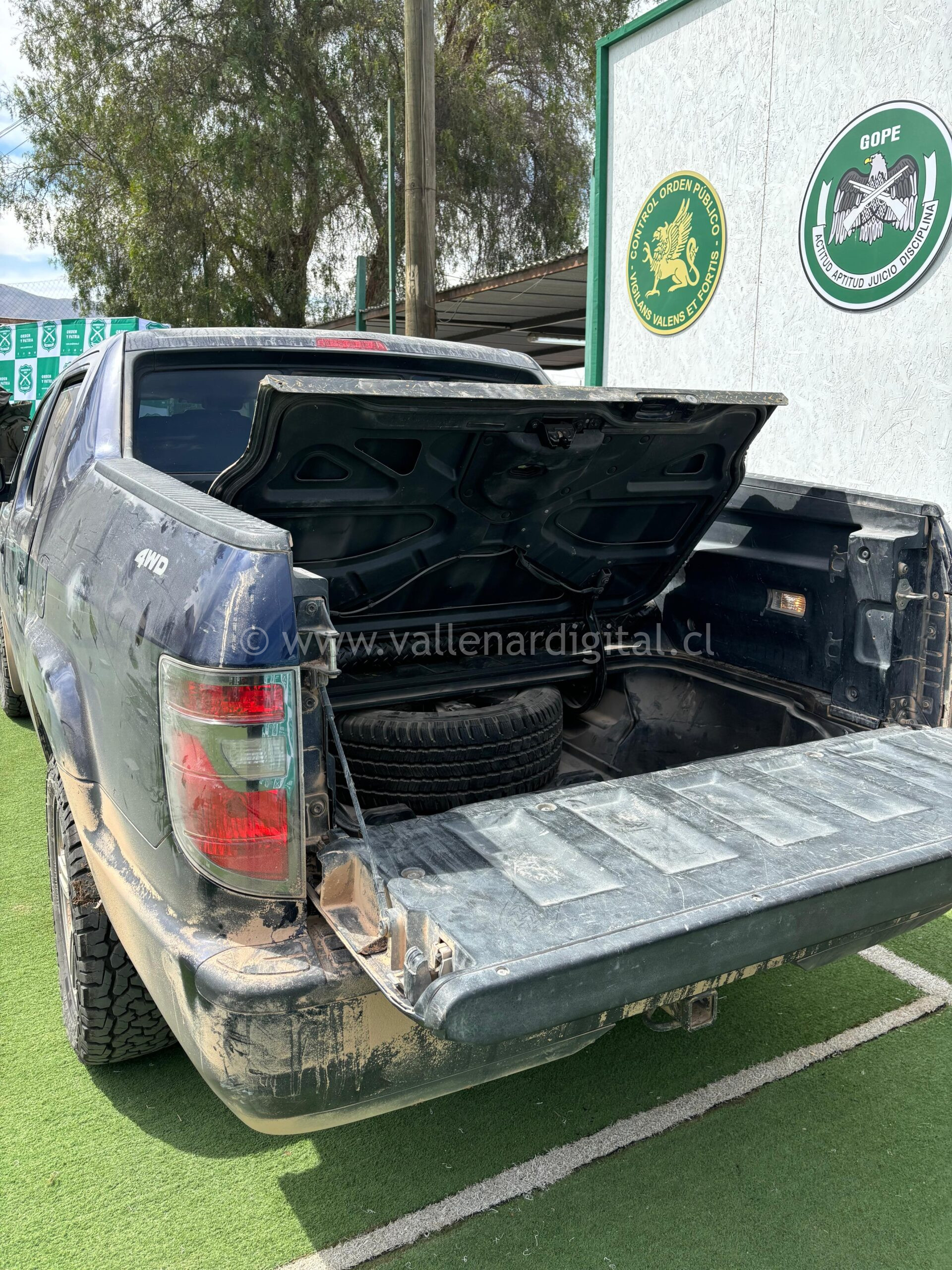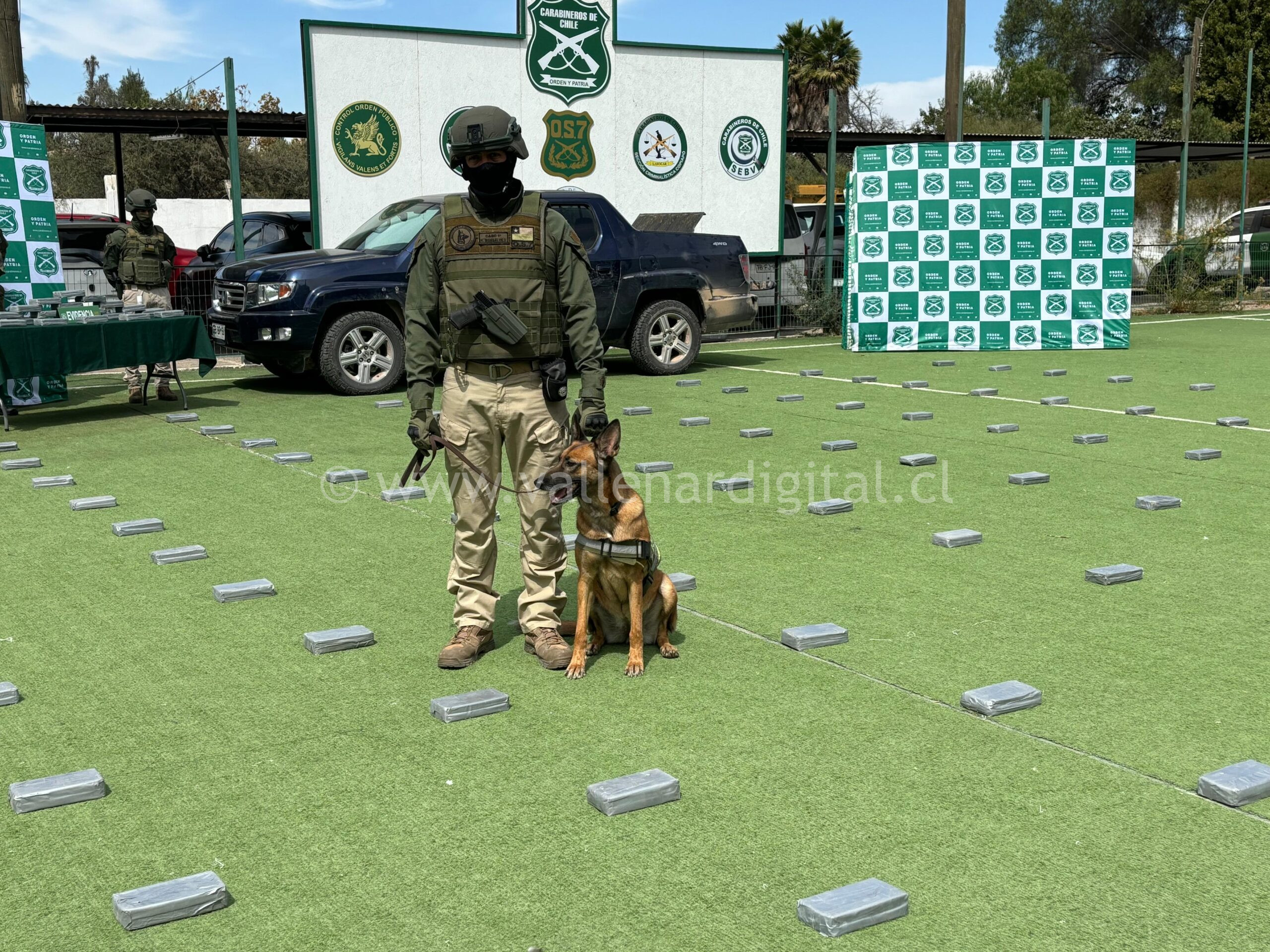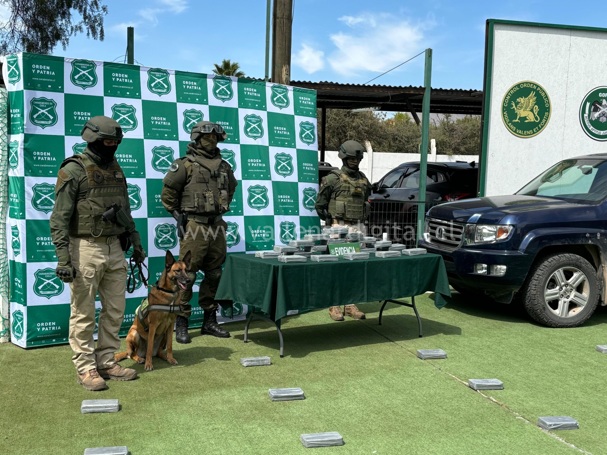 En este contexto, Carabineros de la Unidad Especializada y apoyados por el Depto. Antidrogas O.S.7, conforme a Ronda Masiva en la segunda línea de control contra el narcotráfico y crimen organizado, fiscalizó una camioneta proveniente de la zona norte del país y al efectuar una revisión con el can detector de drogas Hydra, éste alertó en el habitáculo destinado al uso de la rueda de repuesto del vehículo tres sacos contenedores de paquetes con pasta base de cocaína.