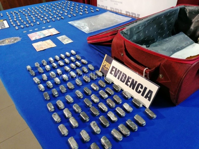 A la revisión del sujeto se encontraron entre sus vestimentas 31 ovoides contenedores de clorhidrato de cocaína el imputado señaló en ese momento que mantenía otros contenedores al interior de su cavidad abdominal, mientras que la mujer que acompañaba el imputado portaba en su ropa interior otros cien cuerpos ovoidales. Las diligencias realizadas por los detectives durante el procedimiento permitieron vincular a los imputados con una maleta roja, la que al ser revisada tenía un doble fondo con cien ovoides más. En total se incautó 3 kilos 435,25 gramos de clorhidrato de cocaína, $57.500 pesos en dinero en efectivo,100 dólares americanos y 64 pesos bolivianos.