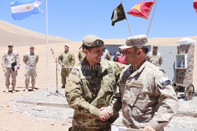Según el Coronel Cesar Auguto Velarde , Comandante del Regimiento de Infantería de Montaña de La Rioja manifestó que estar en el lugar por donde hace doscientos años pasaron gran parte de los hombres que le dieron la libertad Chile y luego al Perú es un hecho que lo llena de orgullo” Nos embarga la emoción ya que es un hecho único en la vida el poder estar en esta celebración , para nosotros es un honor estar hoy con nuestros hermanos chilenos y destacamos el trabajo en conjunto que realizan ambas instituciones principalmente en lo que es la cooperación internacional” , Indicó el oficial argentino.