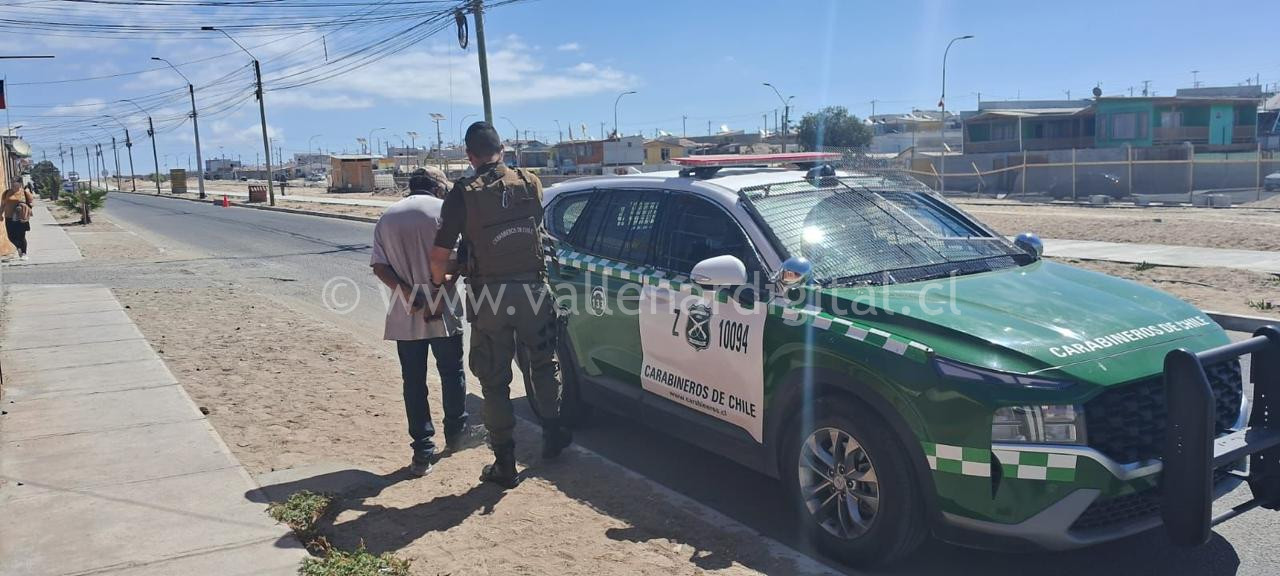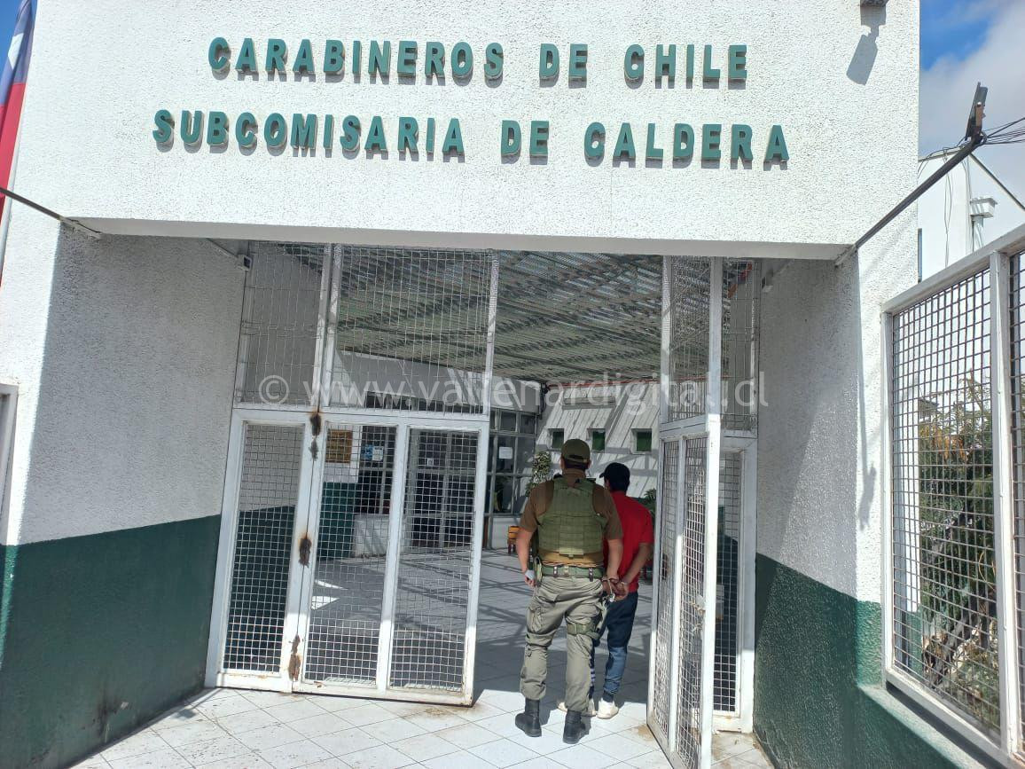 Otro de los aprehendimos fue identificado como C.A.C.V, de 38 años, con un total de 30 reiteraciones por delitos de robo con violencia, conducción en estado de ebriedad, robo en lugar no habitado, lesiones leves, desórdenes públicos, robo frustrado, hurto supermercado, desórdenes públicos, porte de arma blanca, robo con intimidación, violencia intrafamiliar, orden de detención por el delito de lesiones menos graves de fecha 16 de octubre de 2024 del Juzgado de Caldera.