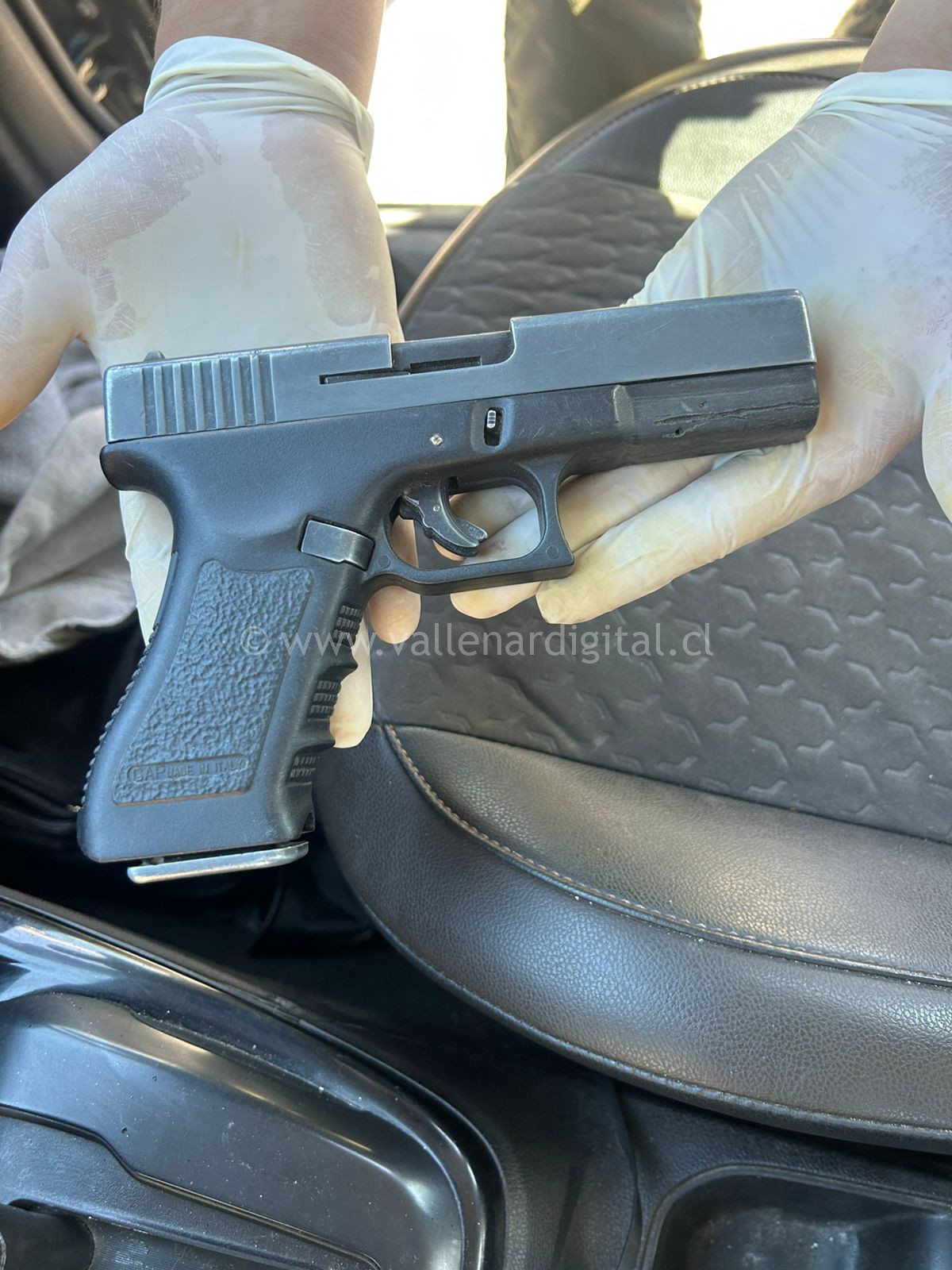 El arma de fuego incautada corresponde a una pistola de material aluminio color negra, con la leyenda GAP de calibre 9 mm., con su respectivo cargador y sin municiones.