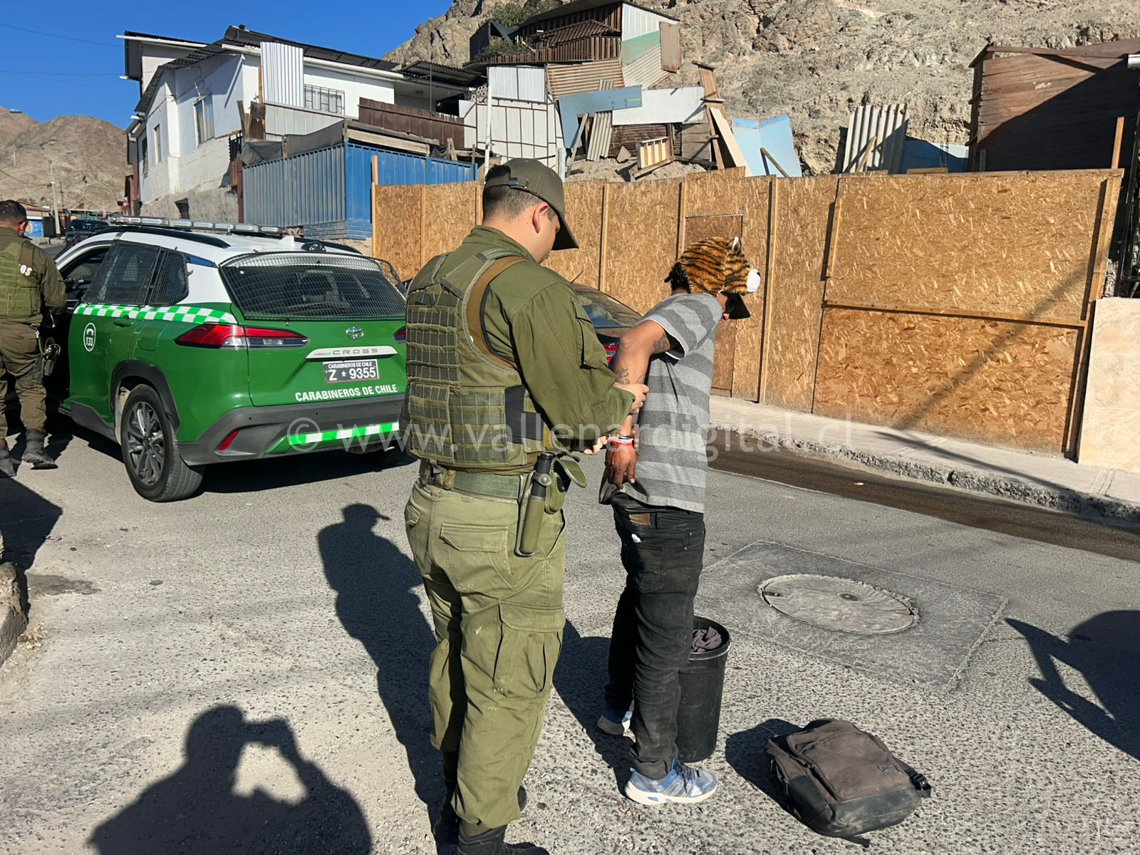 Los antecedentes entregados por Carabineros precisan que uno de los imputados fue sorprendido transitando por calle Bramador con Vallenar en el sector de población Rosario. El imputado de iniciales M.I.V.G., nacionalidad chilena, de 28 años, registraba una orden vigente por el delito de amenazas simples contra personas y propiedades Art. 296 Nro. 3 y otros. Este individuo mantiene diversas detenciones anteriores por delitos de robo en lugar habitado, maltrato habitual, lesiones menos graves, entre otros.