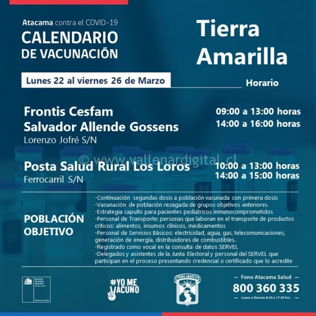 Ya se hicieron las coordinaciones con la Seremía de Salud AtacamaEs importante que, quienes no se han vacunado aún, aprovechen esta oportunidad.