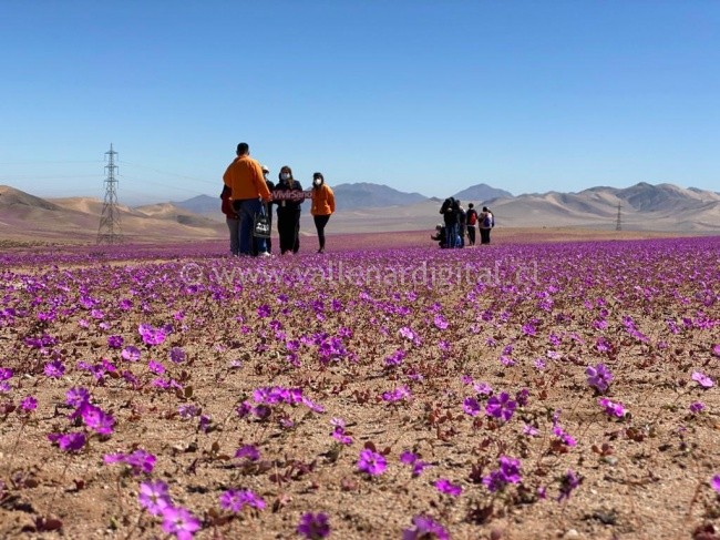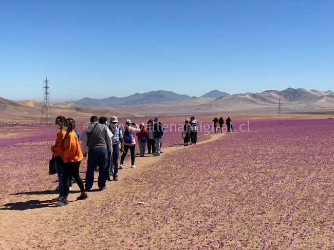 Un amplio manto de flores Nolana, producidas por el fenómeno del desierto florido en la región de Atacama, fue la primera imagen que pudieron contemplar las familias del subsistema de Seguridades y Oportunidades, al viajar desde Copiapó y Tierra Amarilla hasta las proximidades de la provincia del Huasco.