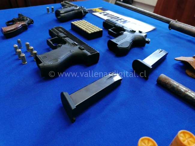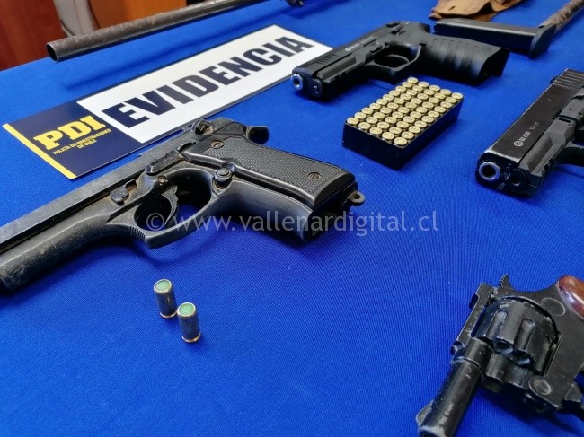 La operación “Fuego Cruzado” permitió incautar dos armas de fuego tipo escopeta, 01 arma de fuego tipo pistola con su cañón modificado, es decir adaptada para el disparo la que mantenía un cargador con munición de fogueo modificada apta para ser percutida, 01 revólver de fogueo calibre 22, con su cañón modificado, aparentemente apto para el disparo y 02 armas de fogueo, calibre 8mm y 9mm, con munición de fogueo, dispuestas para ser adaptadas para el disparo, además de 16 cartuchos escopeta calibre 20, 7 cartuchos 9mm, modificados para proyectar munición y 52 cartuchos de fogueo 9mm.