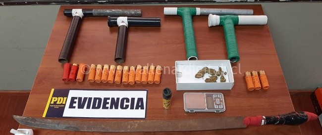 Por lo anterior y luego de obtener antecedentes importantes para la investigación, a través de diversas diligencias facultadas por ley, el fiscal a cargo solicitó órdenes judiciales para ingresar a los tres domicilios investigados en la población Llanos de Ollantay. El procedimiento arrojó resultados positivos logrando incautar dos armas de fuego de fabricación artesanal, 17 cartuchos de escopeta calibre 12, 5,5 gramos de cannabis sativa procesada y elementos utilizados para la dosificación de la droga.