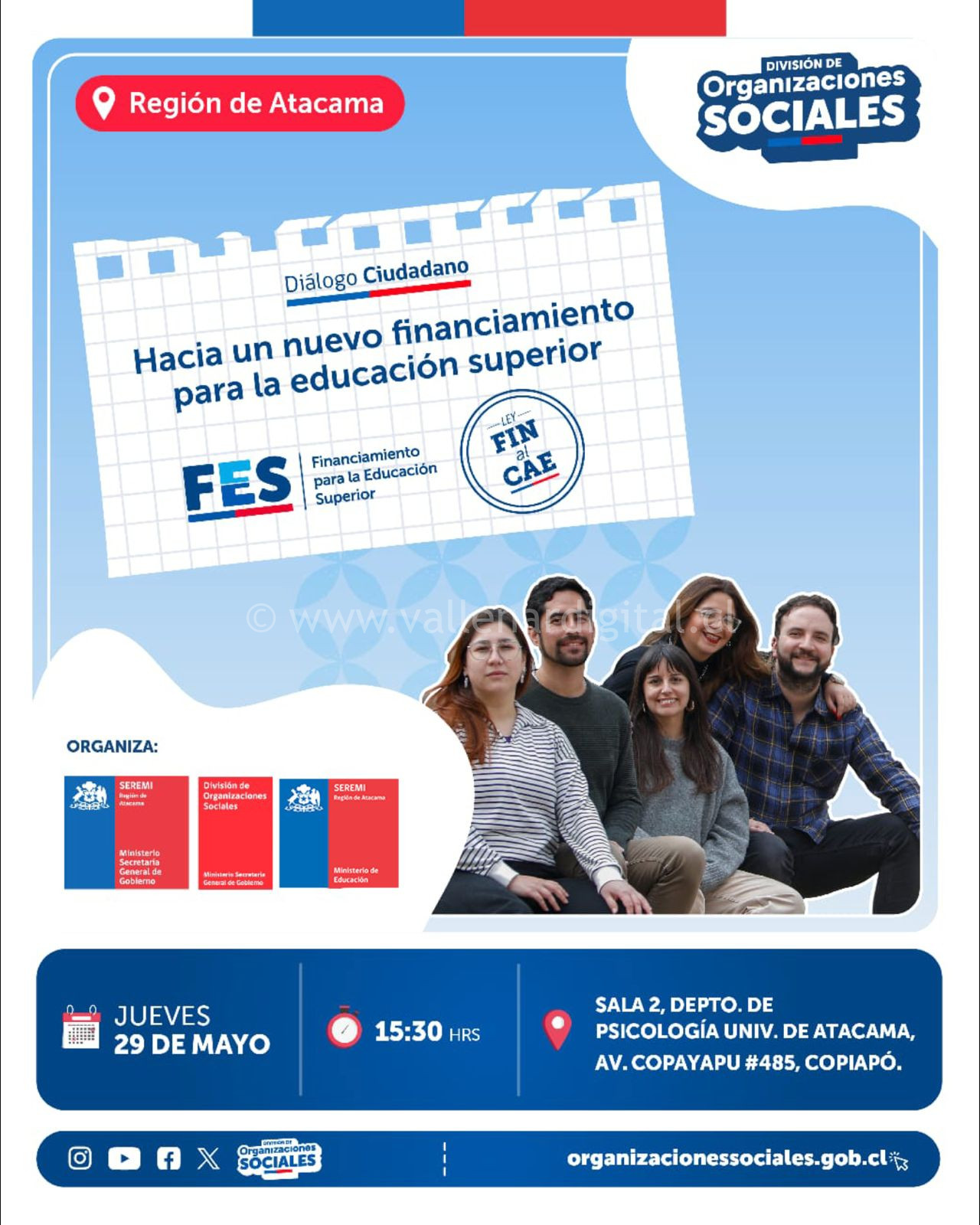 Seremi de Gobierno invita a participar del primer diálogo ciudadano sobre la propuesta de nuevo sistema de financiamiento para la educación superior.