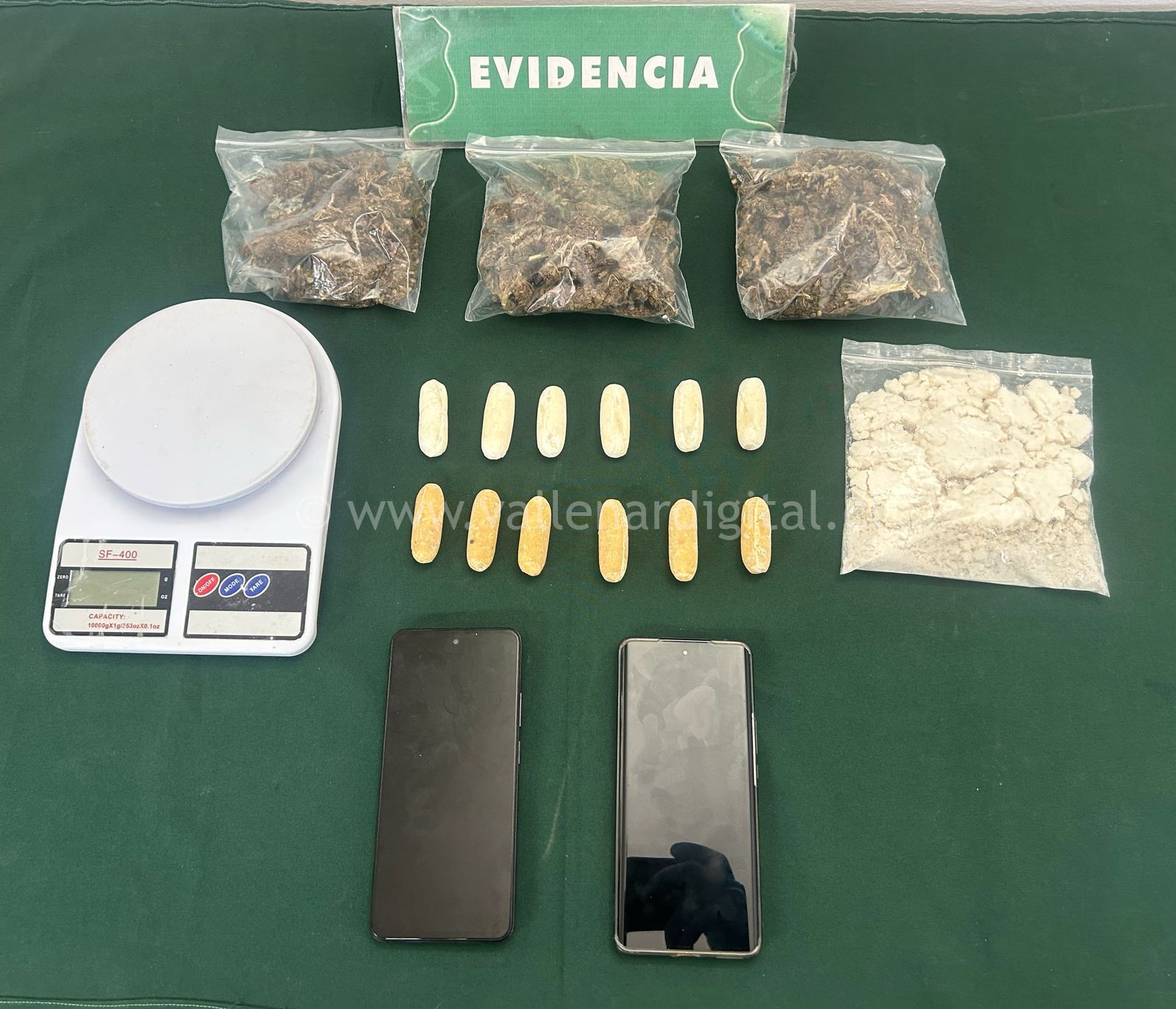 Por este hecho, ambos hombres de nacionalidad colombiana fueron detenidos por el delito de microtráfico de drogas y se incautó la cantidad de 386.4 gramos de pasta base y 136.9 gramos de marihuana. Además de los ovoides.