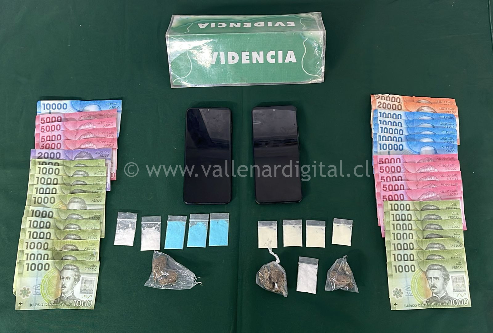12 gramos de ketamina, 9 gramos de marihuana y 165.000 en dinero en efectivo.