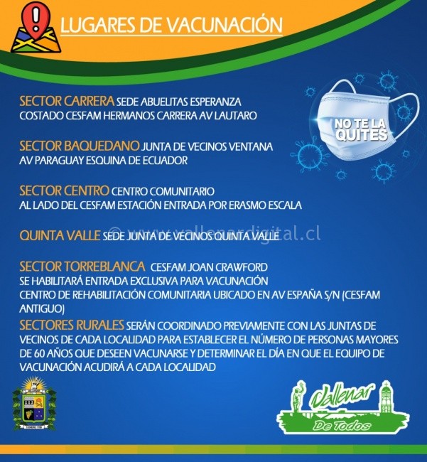 Revisa aqui programa de vacunacion de la ciudad de Vallenar que comienza mañana Miercoles 03 de Febrero hasta el 12 de Febrero
