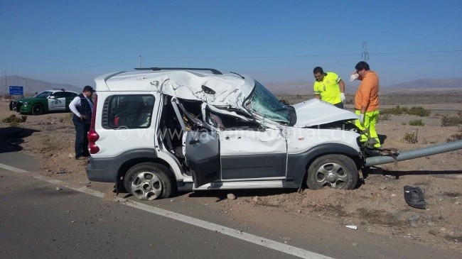 Camioneta choca con postes en la ruta 5 norte, dejando a tres personas lesionadas.
