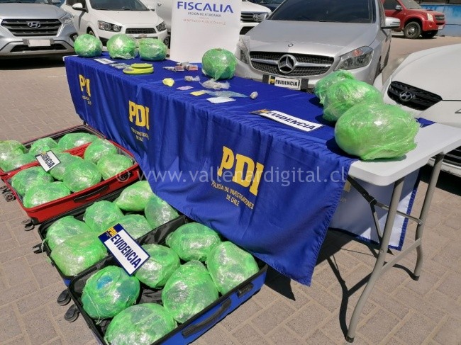 Respecto de esta operación el jefe de la Tercera Región Policial de la PDI, prefecto Hugo Haeger Bórquez, indicó que “queremos dar a conocer los resultados de una investigación criminalística que se ha desarrollado desde diciembre del año 2020, donde la Brigada Antinarcóticos y Contra el Crimen Organizado de la ciudad de Copiapó en conjunto con el Ministerio Público de la ciudad de Vallenar, donde se abocaron a investigar una serie de denuncias que existían por tráfico de drogas que existían en dicha ciudad. Ante estos antecedentes, con las diversas medidas que permite la ley, se logró determinar la existencia de una banda criminal que operaba en la ciudad. Es así, que producto de la información con la que se contaba se detuvo a cuatro personas integrantes de esta banda, además de la incautación de más de 32 kilos de cannabis, 105 gramos de “Tussi”, clorhidrato de cocaína, hongos alucinógenos, dinero en efectivo y dos vehículos de alta gama, uno marca Mercedes Benz y un Hyundai Genesis. La droga era transportada al interior de las maletas que se usaban de contenedores en los vehículos incautados y uno de ellos conducido por el líder de la banda criminal”.