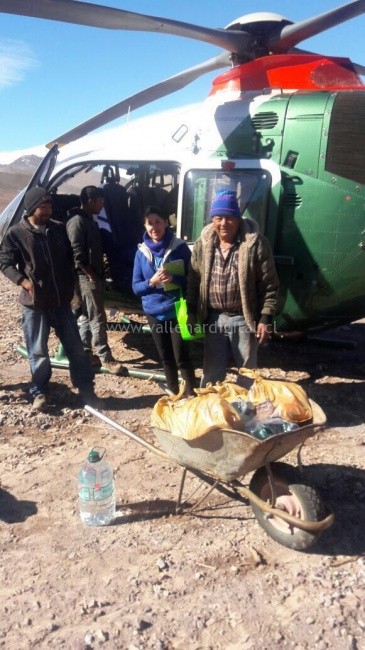 Fue así que mediante un helicóptero se llegó a estos lugares, entre ellos el sector de El Berraco, ubicado a 77 kilómetros al Sur Este de Vallenar, donde se llevó provisiones a dos mujeres.