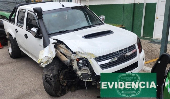 Conforme a lo anterior y en los momentos que el vehículo infractor huía por Merced y al llegar a calle Santiago, colisionó a un automóvil particular, marca Geely, modelo CG7, color blanco, quien lo hacía por la misma vía, chocando además con una barrera de contención ubicada en el lugar, para continuar con su huida, colisionando a un vehículo policial de patrullaje en la población, quienes lo antecedían por la misma arteria, a fin de evitar la fuga de estos sujetos.