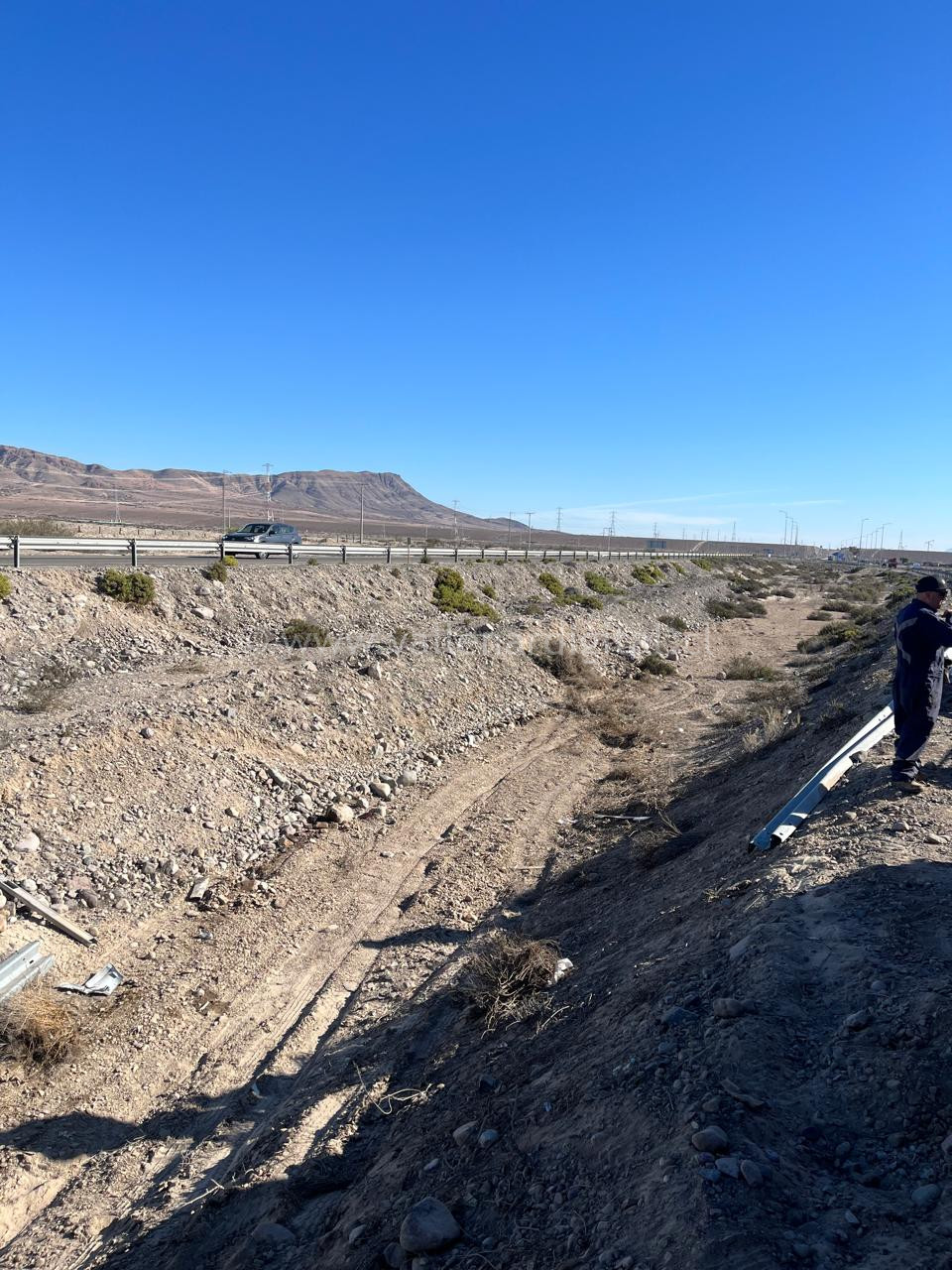 A la hora señalada y a raíz de comunicado radial de la CENCO, personal policial se traslada al lugar entrevistando al conductor identificado como H.A.M.M, 62 años, chileno quien momentos antes conducía el Tracto Camión P.P.U JPZT- 59 por la señalada ruta y al llegar al Km 714, siente un fuerte ruido detrás de la cabina del camión perdiendo el control cayendo al bandejon central ocasionando daños en la cabina del móvil y estanque de combustible de petróleo.
