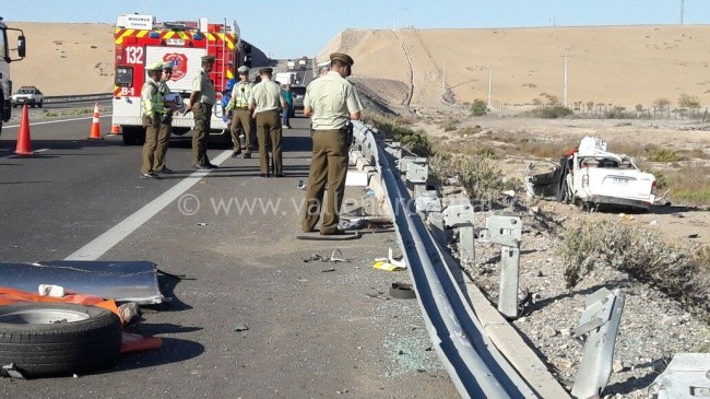 En el lugar del hecho se constituyó el fiscal de turno de Vallenar, Roberto Robledo, quien indicó que el accidente ocurrió alrededor de las 17:00 horas en el kilómetro 715 de la mencionada ruta cuando la camioneta en la que viajaban los tres fallecidos con dirección a Copiapó volcó por razones que deberán establecerse.