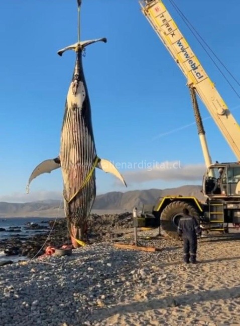 Gracias a ello, la dirección provincial del Servicio Nacional de Pesca, SERNAPESCA, tomó conocimiento del hecho y tras coordinaciones realizadas por la Secretaría Regional de Medio Ambiente, se activaron los protocolos correspondientes en los que participaron la Armada y la municipalidad de Chañaral, quienes finalmente lograron trasladar y enterrar al mamífero, que resultó ser una ballena jorobada adulta, de más de 12 metros de largo y aproximadamente 20 toneladas de peso, al relleno sanitario de Caldera.