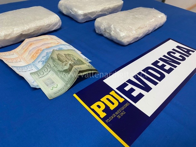 Mientras oficiales policiales realizaban un control carretero a buses interprovinciales en la ruta que une Vallenar con la ciudad de Copiapó, fiscalizaron un bus proveniente del norte del país junto al ejemplar canino Henry detectando un bolso con una sustancia ilícita, al realizarle la prueba de campo respectiva arrojó coloración positiva para cocaína base, con un peso bruto de 2 kilos 945,43 gramos. Las diligencias realizadas permitieron vincular el equipaje con el pasajero procediendo a entrevistar al sujeto quien reconoció que el bolso incautado era de su pertenencia, por lo que fue detenido por infracción al artículo 3° de la Ley de Drogas y puesto a disposición del Juzgado de Garantía de Vallenar.