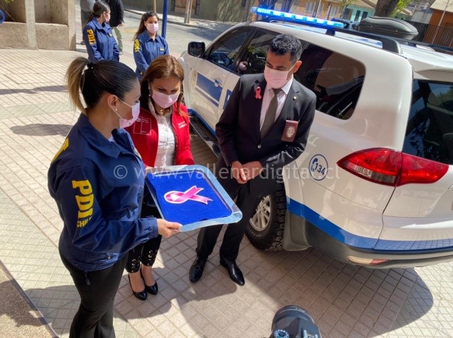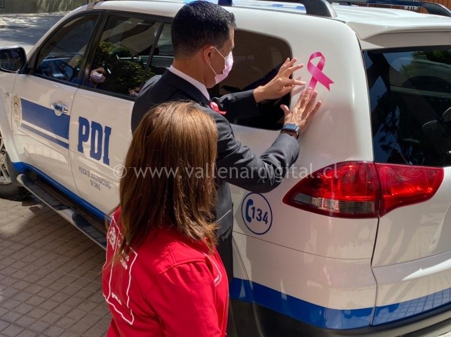 Durante el lanzamiento, el Jefe Regional prefecto inspector Hugo Haeger, estuvo acompañado por la Seremi de Salud Claudia Valle, con quien instaló, en el carro policial, el tradicional lazo rosa que identifica a esta enfermedad, ratificando de esa forma el histórico compromiso de la Policía de Investigaciones de Chile con las mujeres.